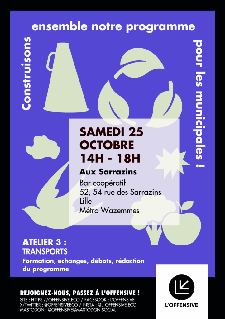 🛴 On démarre avec 1 h 30 de formation sur la question des transports par des représentant·es du service d’autopartage coopératif Citiz, du syndicat Sud Rail, de l’Association Droit au Vélo (ADAV), d’un architecte de MobiLille et d’un salarié d’Ilévia. 🚂 Ensuite on échange, on discute et on rédige collectivement les points du programme jusqu’à […]